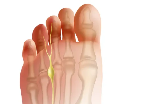 Consiste en el engrosamiento del tejido alrededor de uno de los nervios de los dedos del pie afectados. Se conoce también como neuroma interdigital o metatarsalgia de Morton.